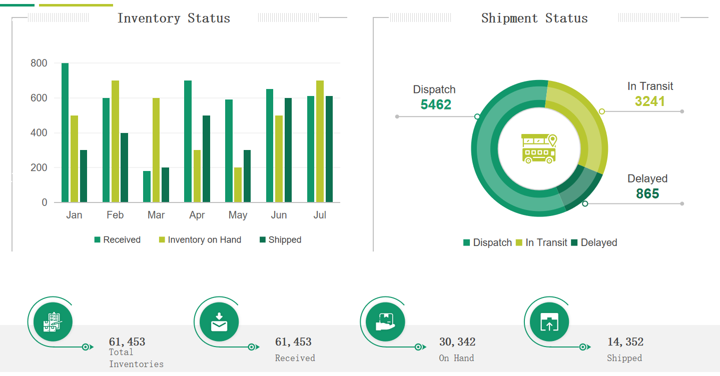 Gráficos con estadisticas de entradas salidas e inventario